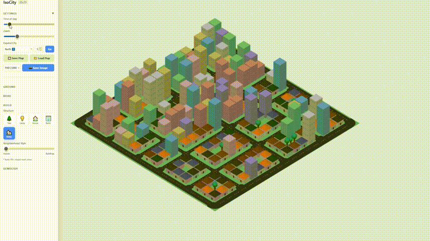 Hey there! This is a browser-based isometric city builder made for you who want to create big cities without spending hours placing every single tile and building individually. That's where the main idea came from. I've found a few amazing detailed city builders in the internet, but I still missed the practicality of building large cities without having to spend hours picking up piece by piece and assembling tile by tile.